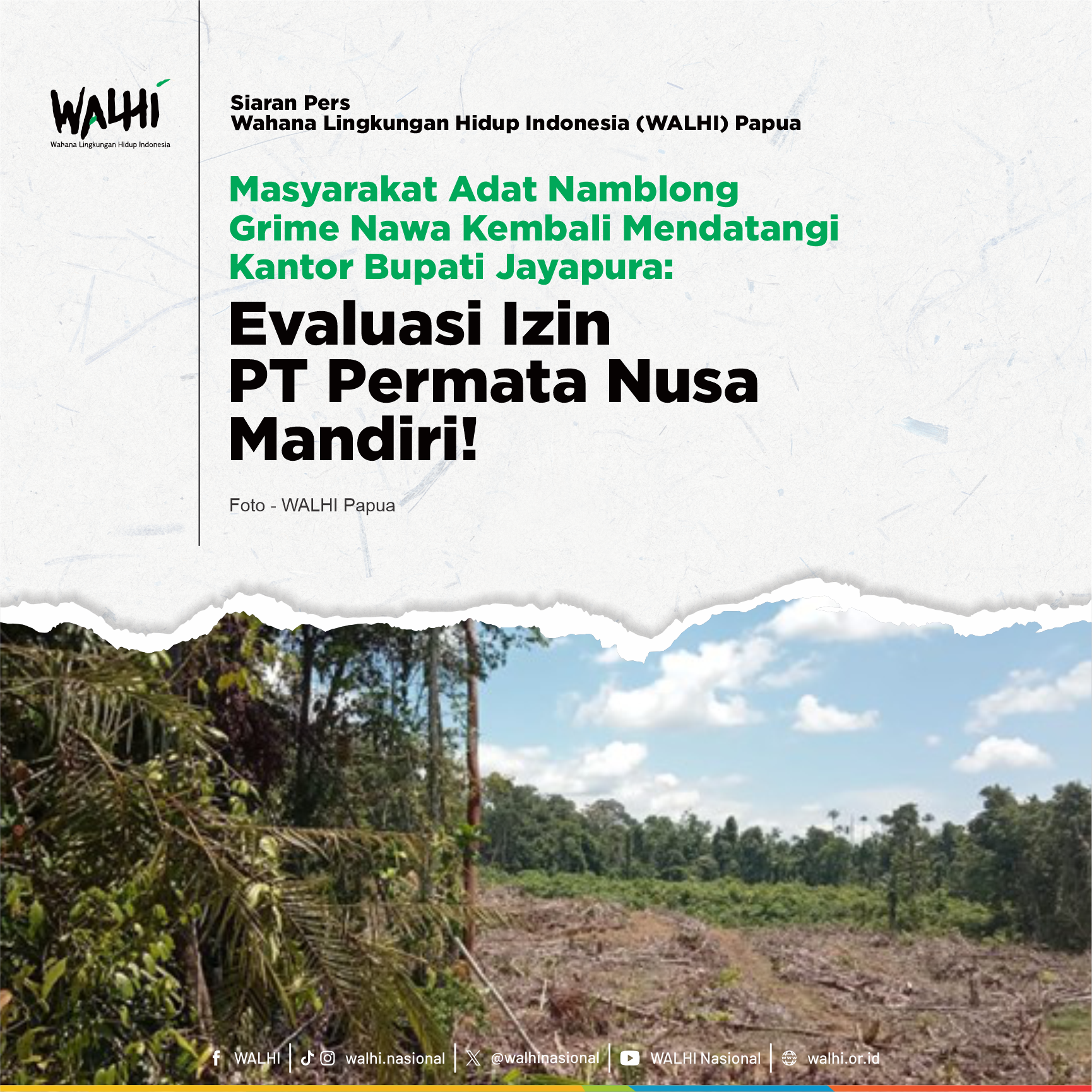 WALHI Papua: 0822 3800 0233