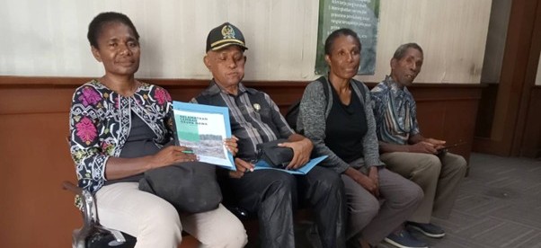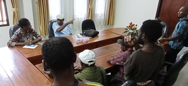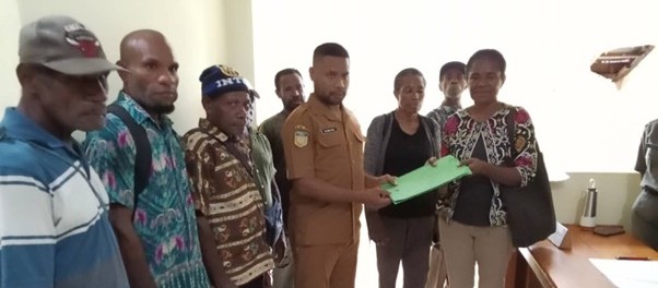 Penyerahan aspirasi kertas kebijakan pelanggaran perusahaan PT Permata Nusa Mandiri kepada staf Wakil Bupati Jayapura.